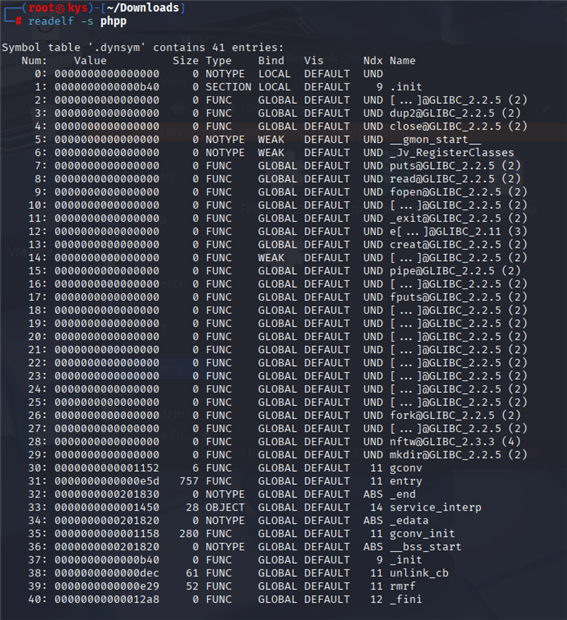readelf –s phpp ( 섹션 확인 )